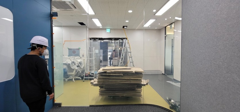 화성에 위치한 케이씨텍 신축 사옥 회의실 2곳에 스마트필름 시공현장.